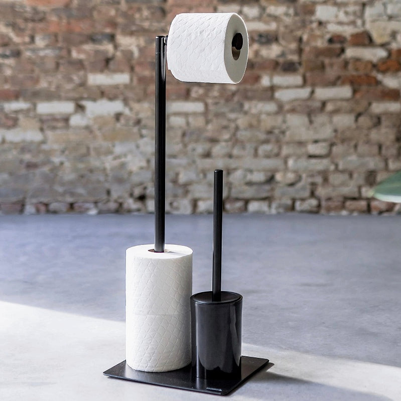 Држач за тоалетни хартии со четка за WC црна боја