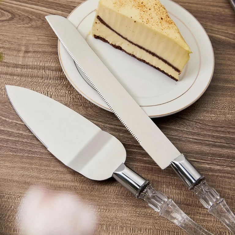 - Сетот содржи долг нож со забци за сечење торта и шпакла за сечење и идеално сервирање на парче торта.